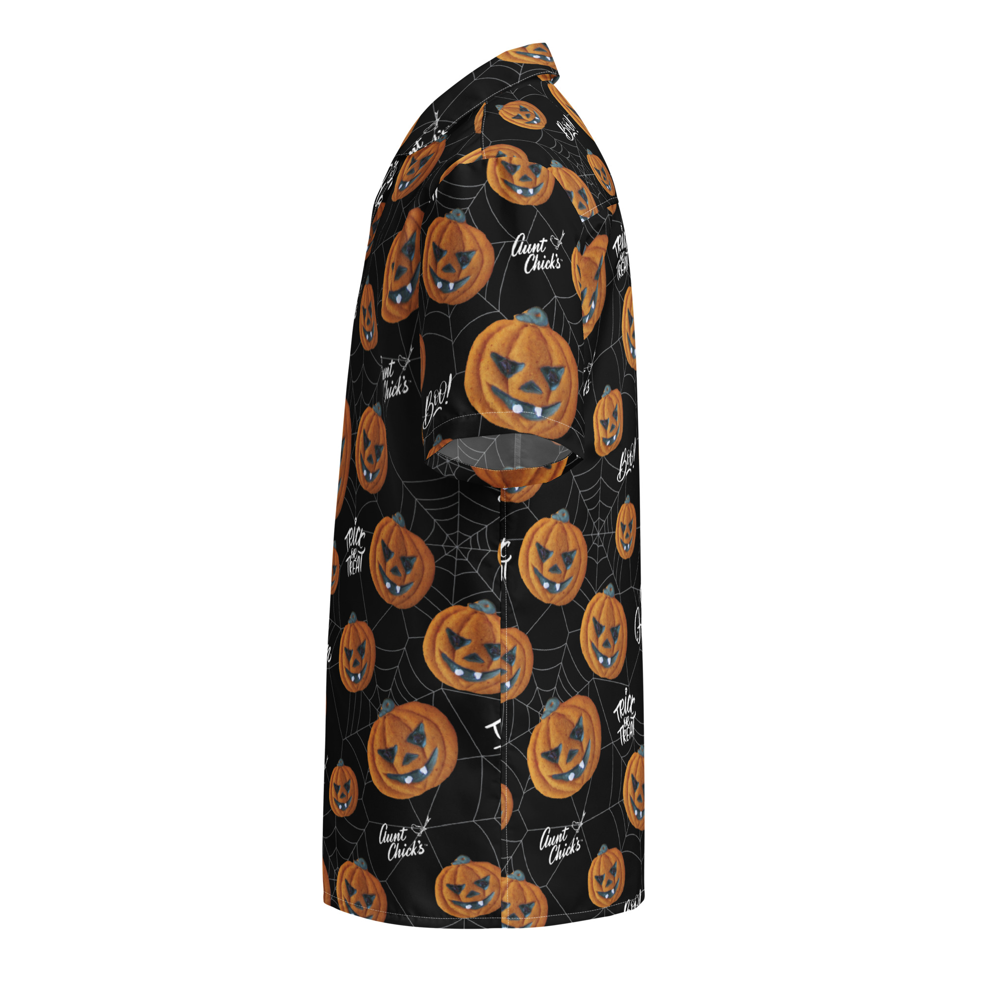 Perfect for spooky season gatherings, lounging at home, or staying cool on warm days, the Aunt Chick’s™ Jack-o’-lantern Button Down Shirt combines nostalgic charm with modern comfort. Embrace the Halloween spirit with this versatile and stylish piece!