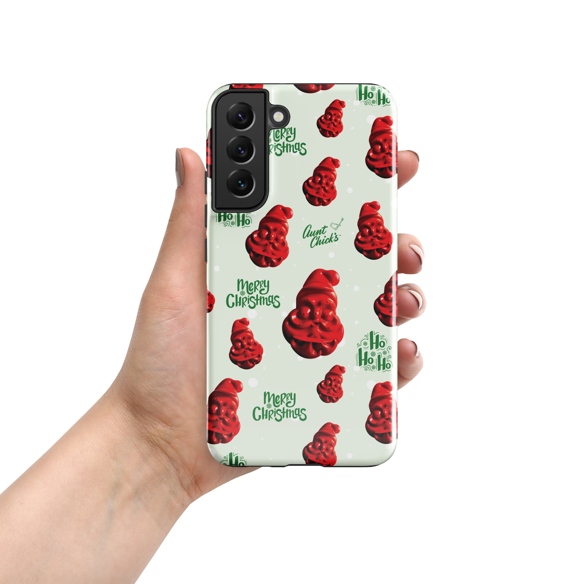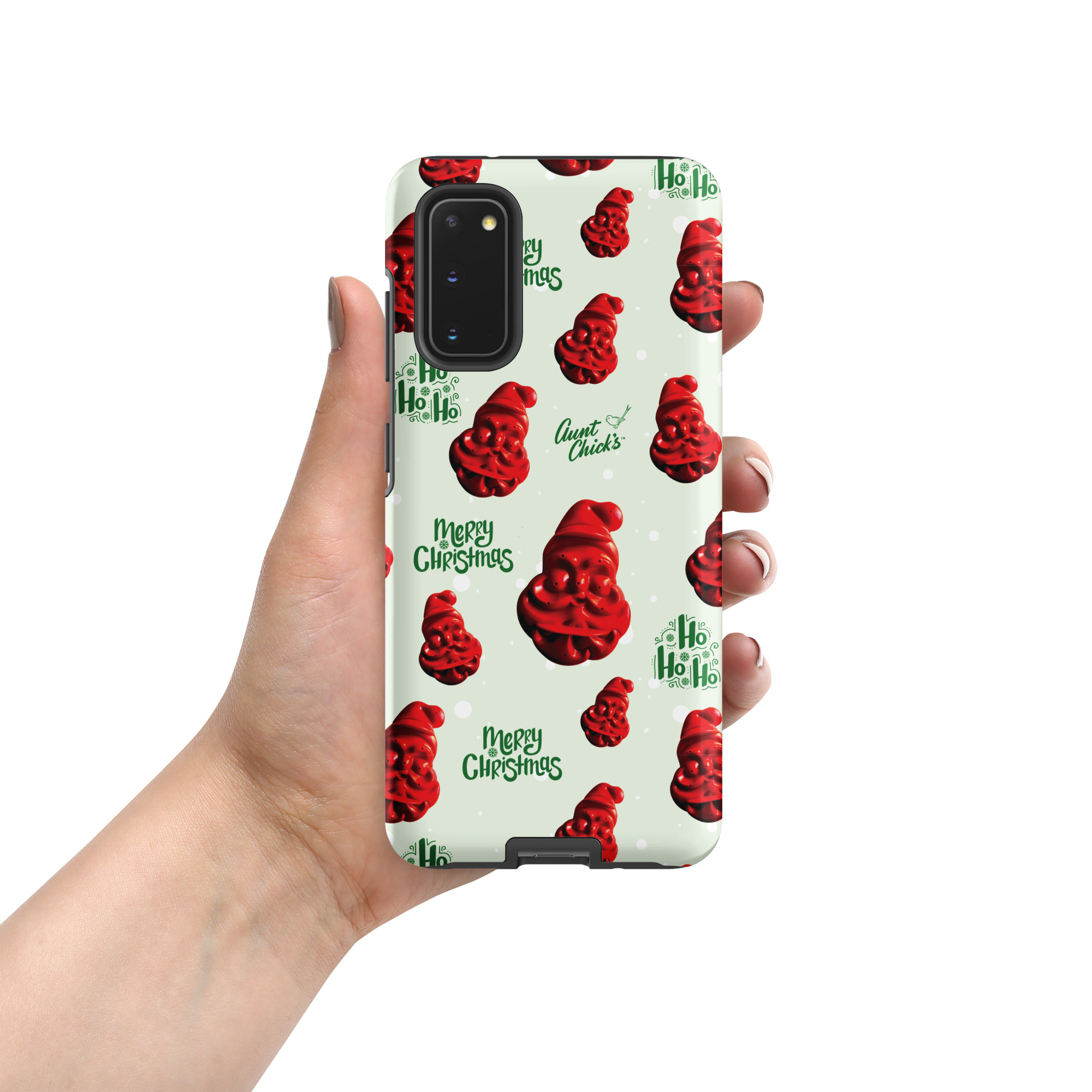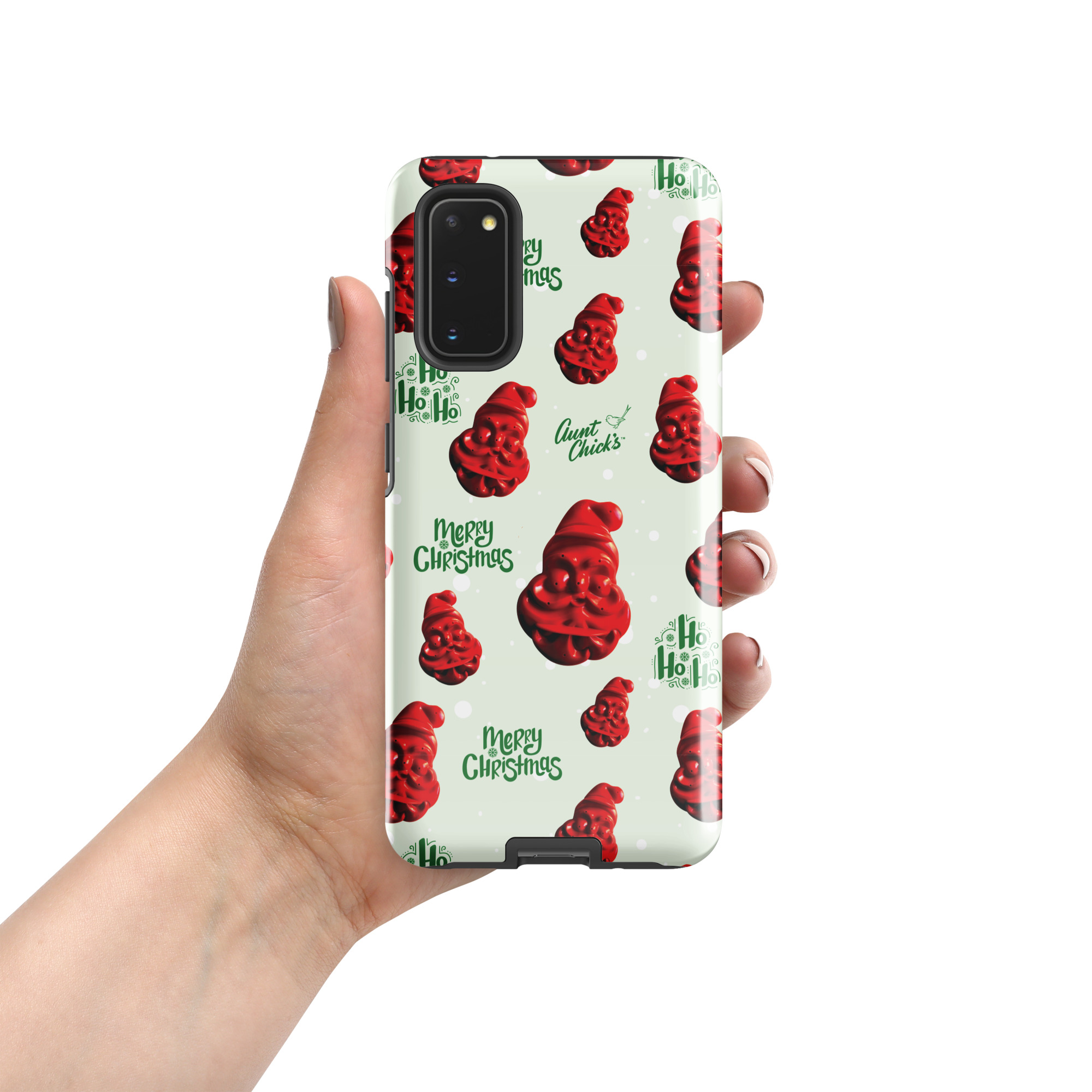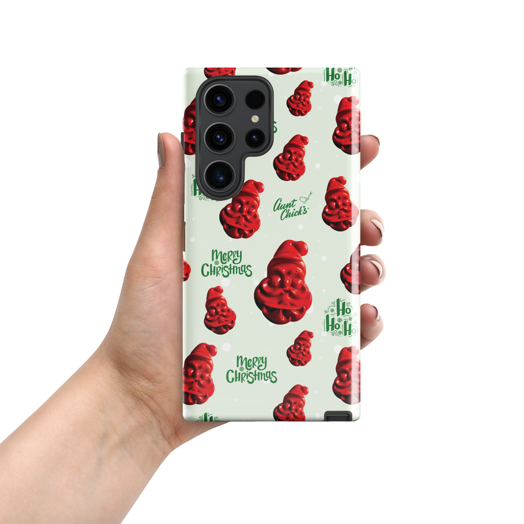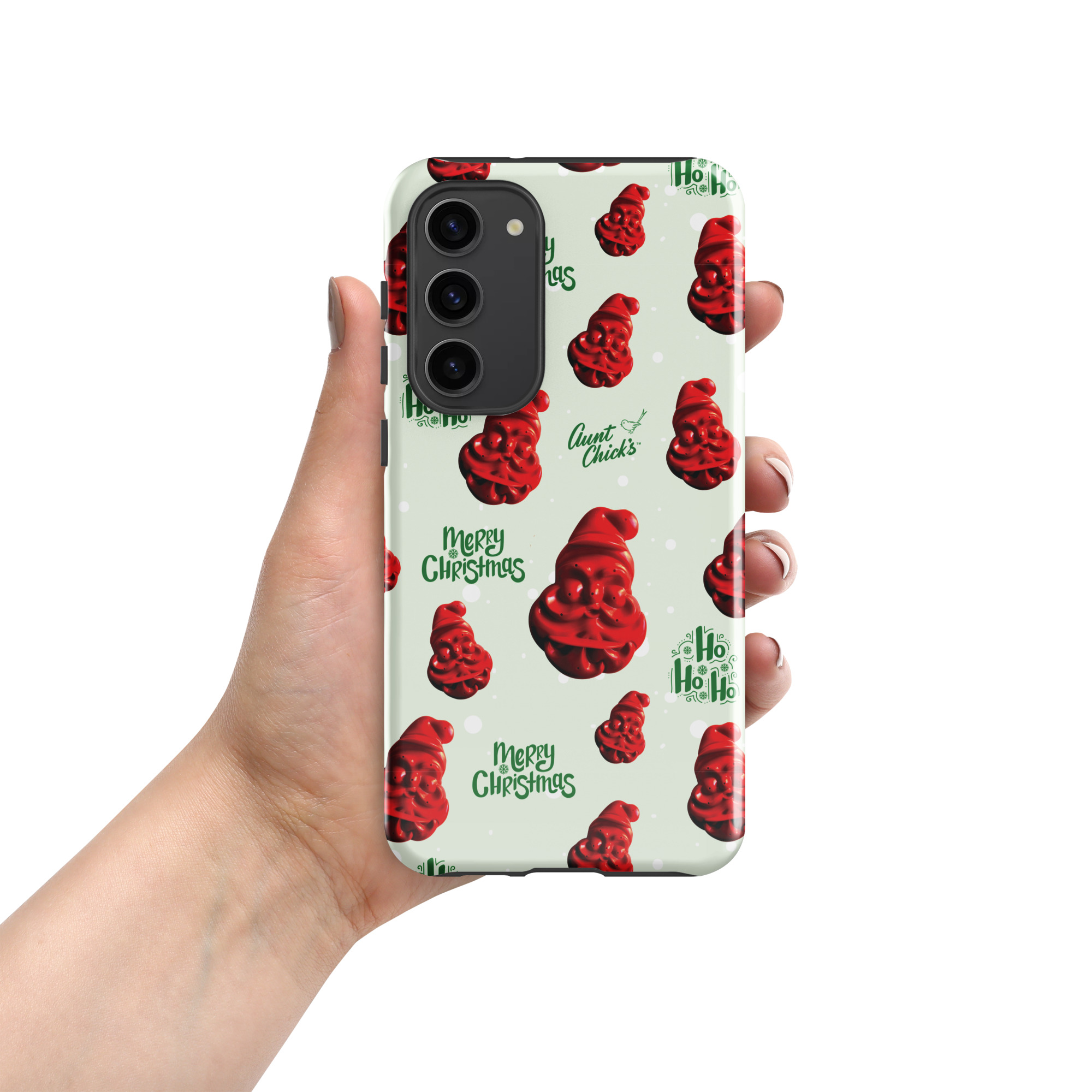 Introducing the Samsung® Tough Phone Case adorned with Aunt Chick’s™ Jolly Santa Cookie Cutters—a festive delight to safeguard your phone during the holiday season. With a vibrant holiday pattern featuring words of cheer and Aunt Chick’s™ logo, this case embodies the spirit of celebration.