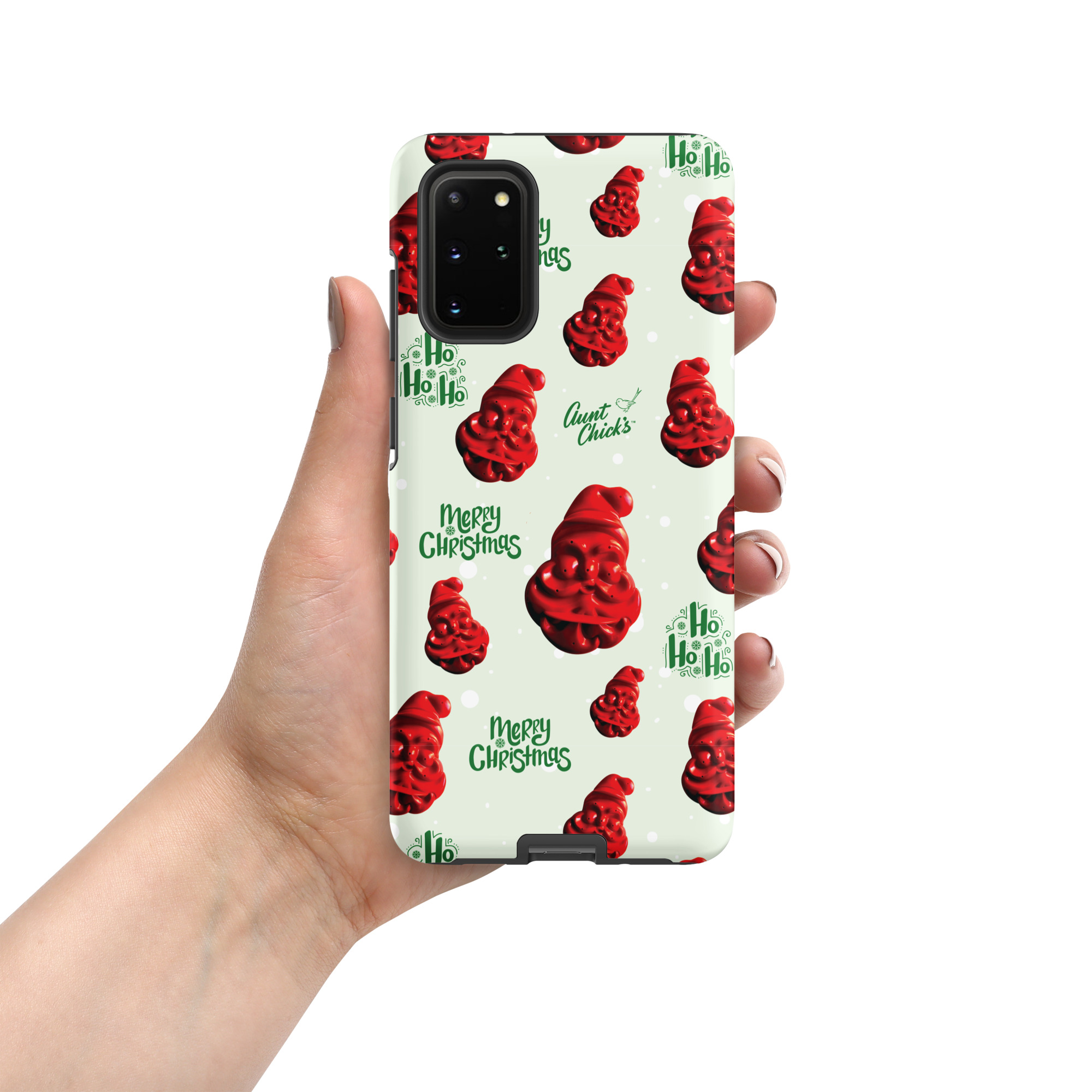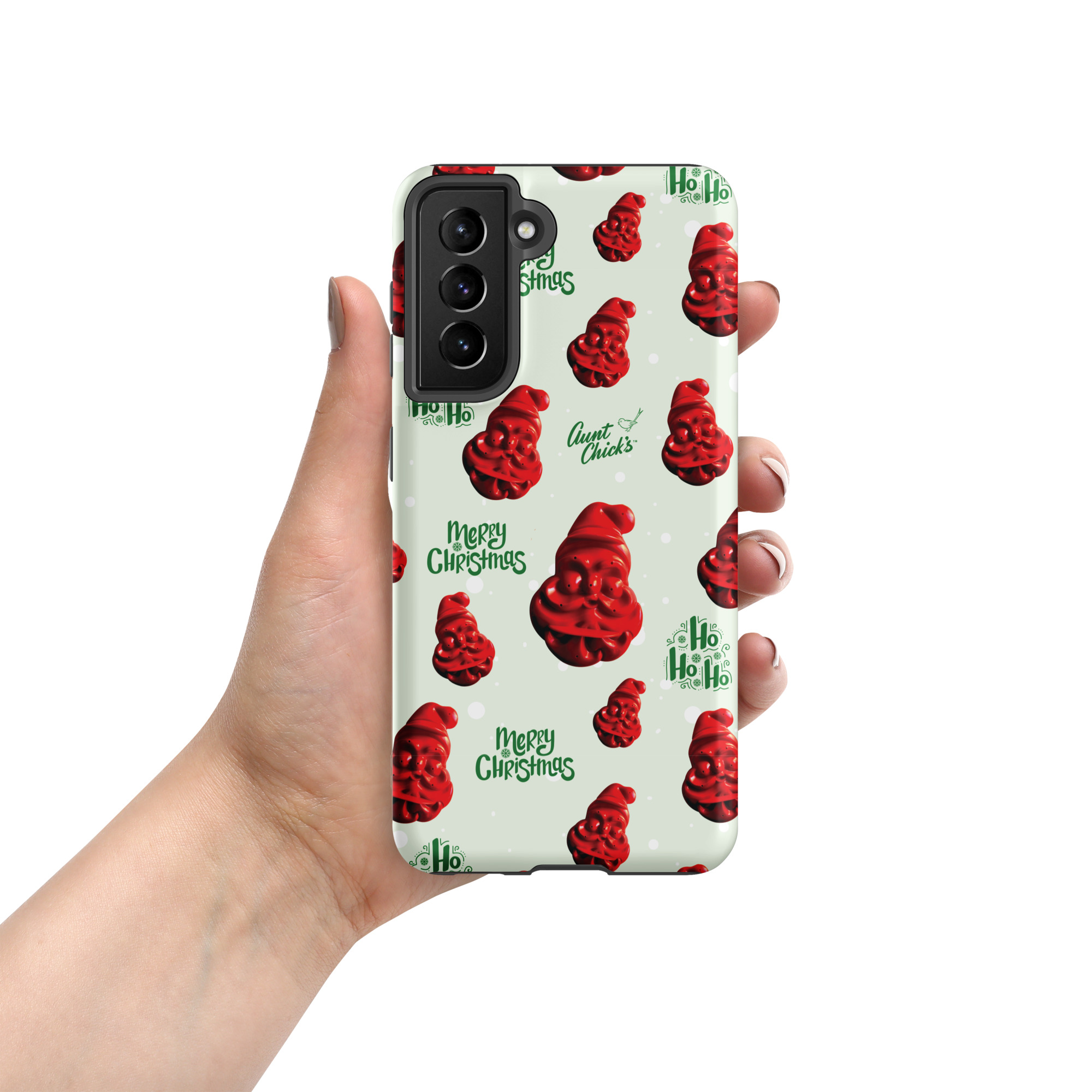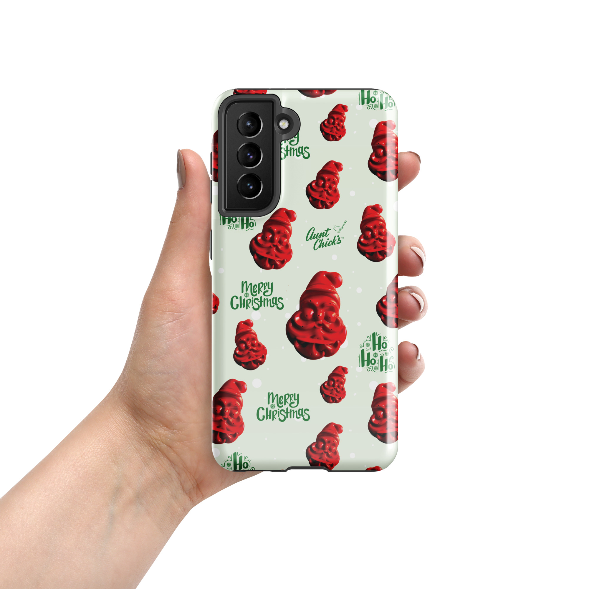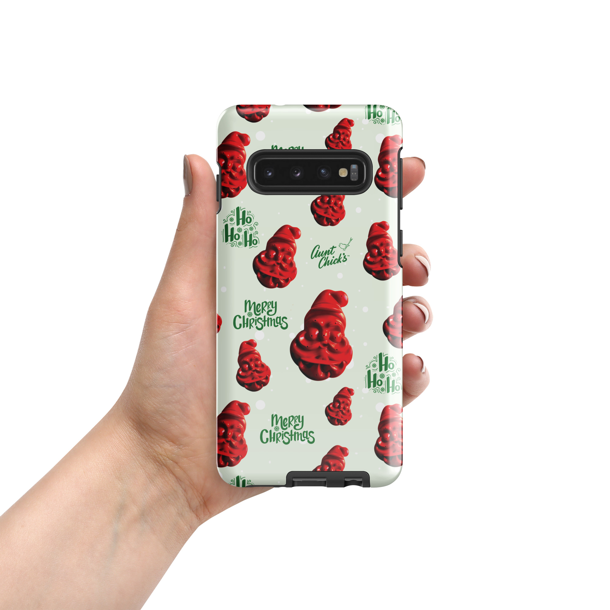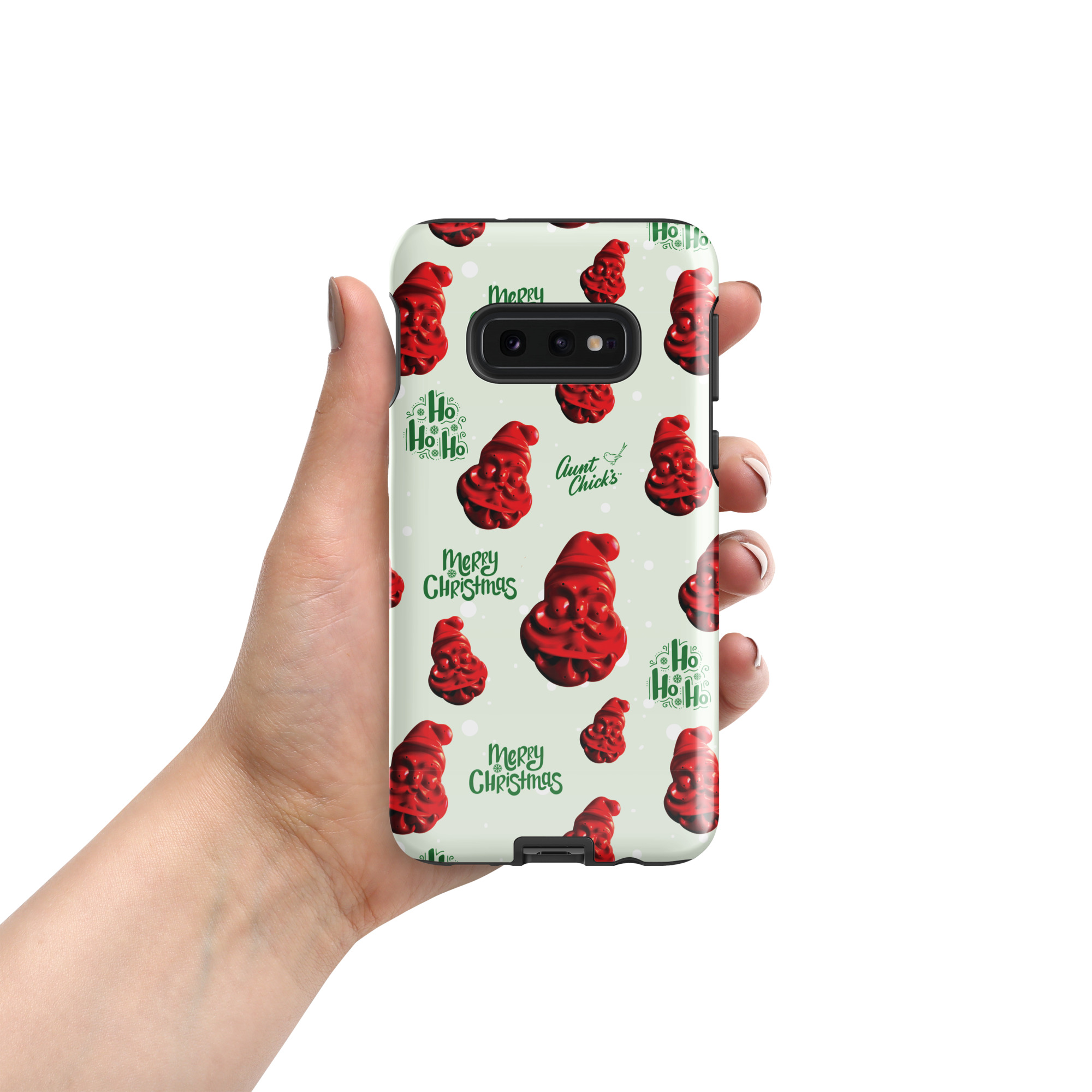 Introducing the Samsung® Tough Phone Case adorned with Aunt Chick’s™ Jolly Santa Cookie Cutters—a festive delight to safeguard your phone during the holiday season. With a vibrant holiday pattern featuring words of cheer and Aunt Chick’s™ logo, this case embodies the spirit of celebration.