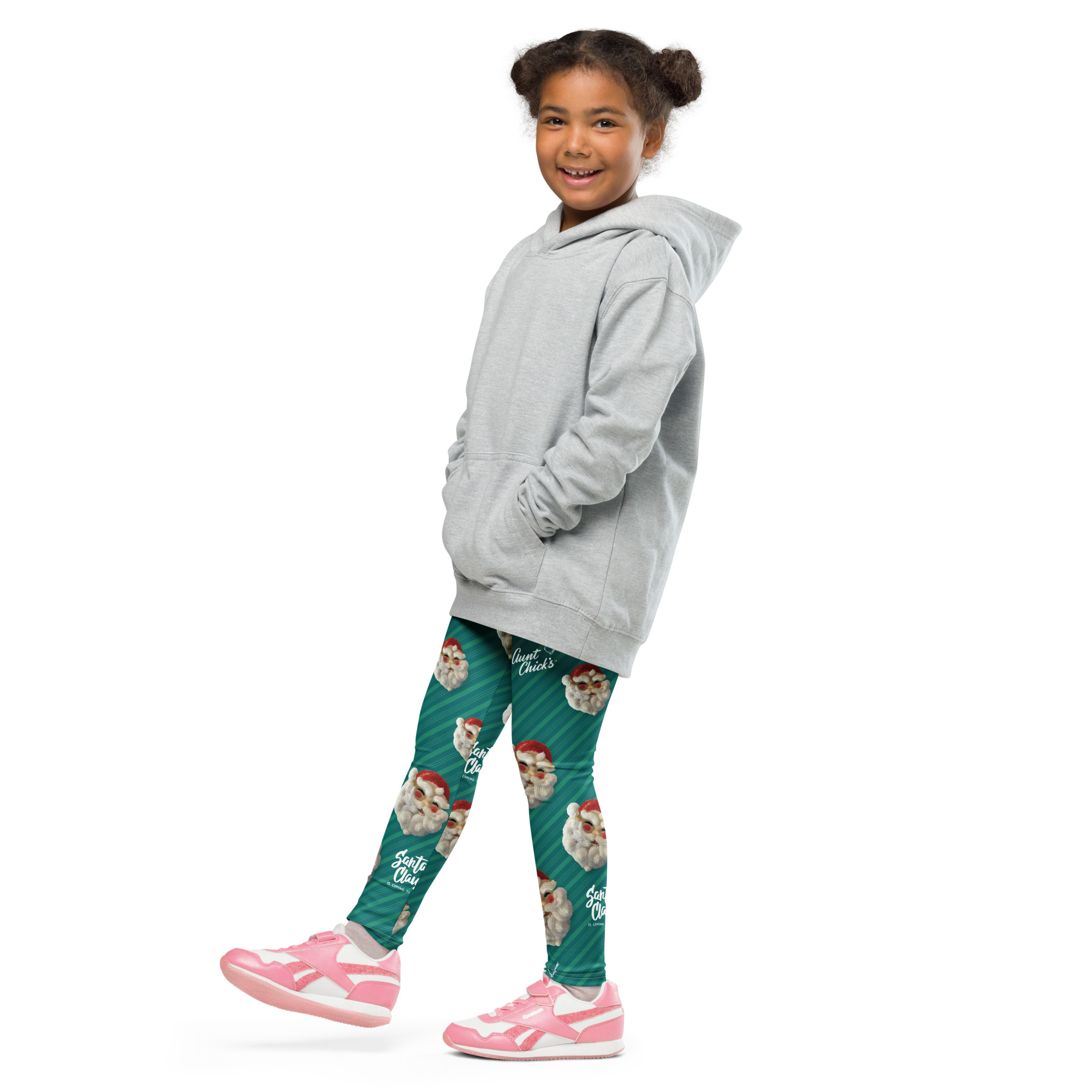 Introducing our Youth Leggings, designed to bring holiday cheer and comfort to every young one’s wardrobe. These leggings feature a delightful pattern filled with charmingly decorated Santa Cookies made with Aunt Chick’s™ Jolly Santa Cookie Cutter, alongside festive expressions of “Ho-Ho-Ho” and “Merry Christmas,” and Aunt Chick’s™ Logo on a striped red background.