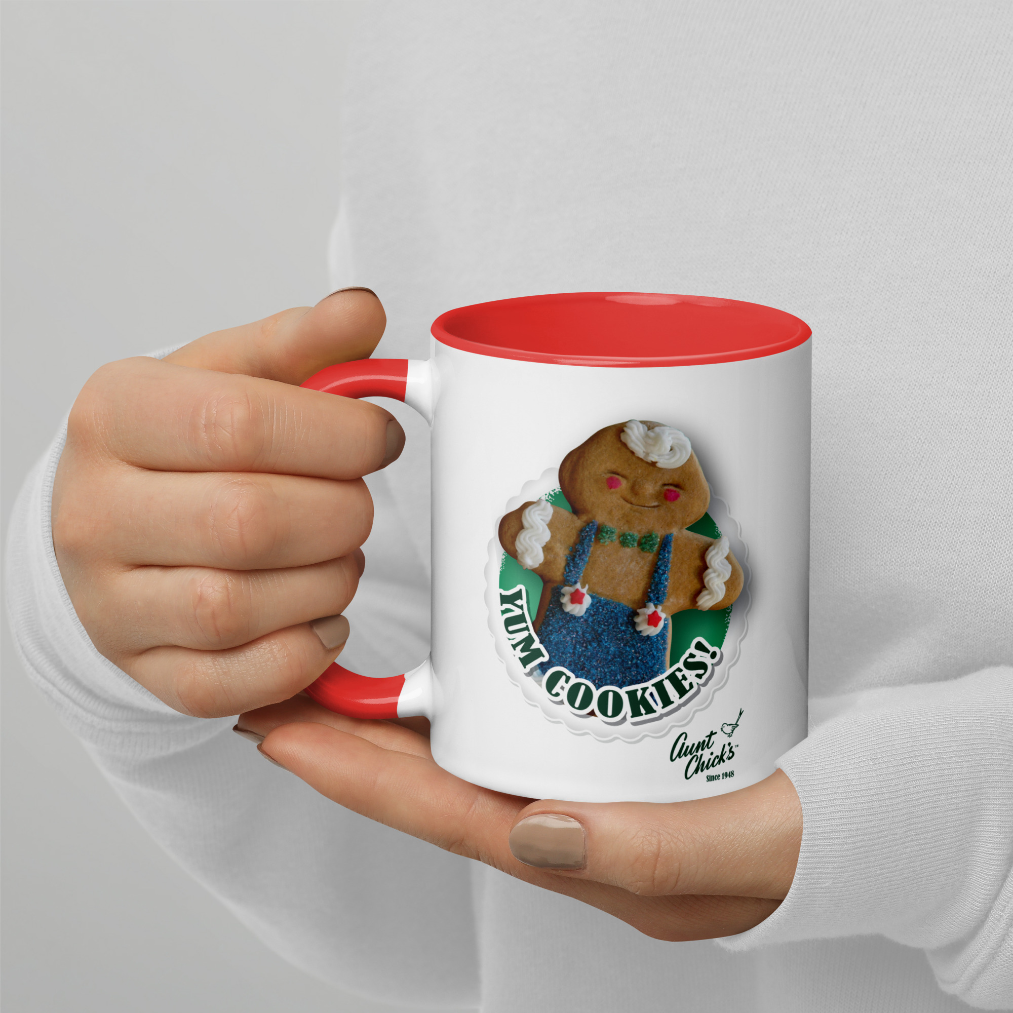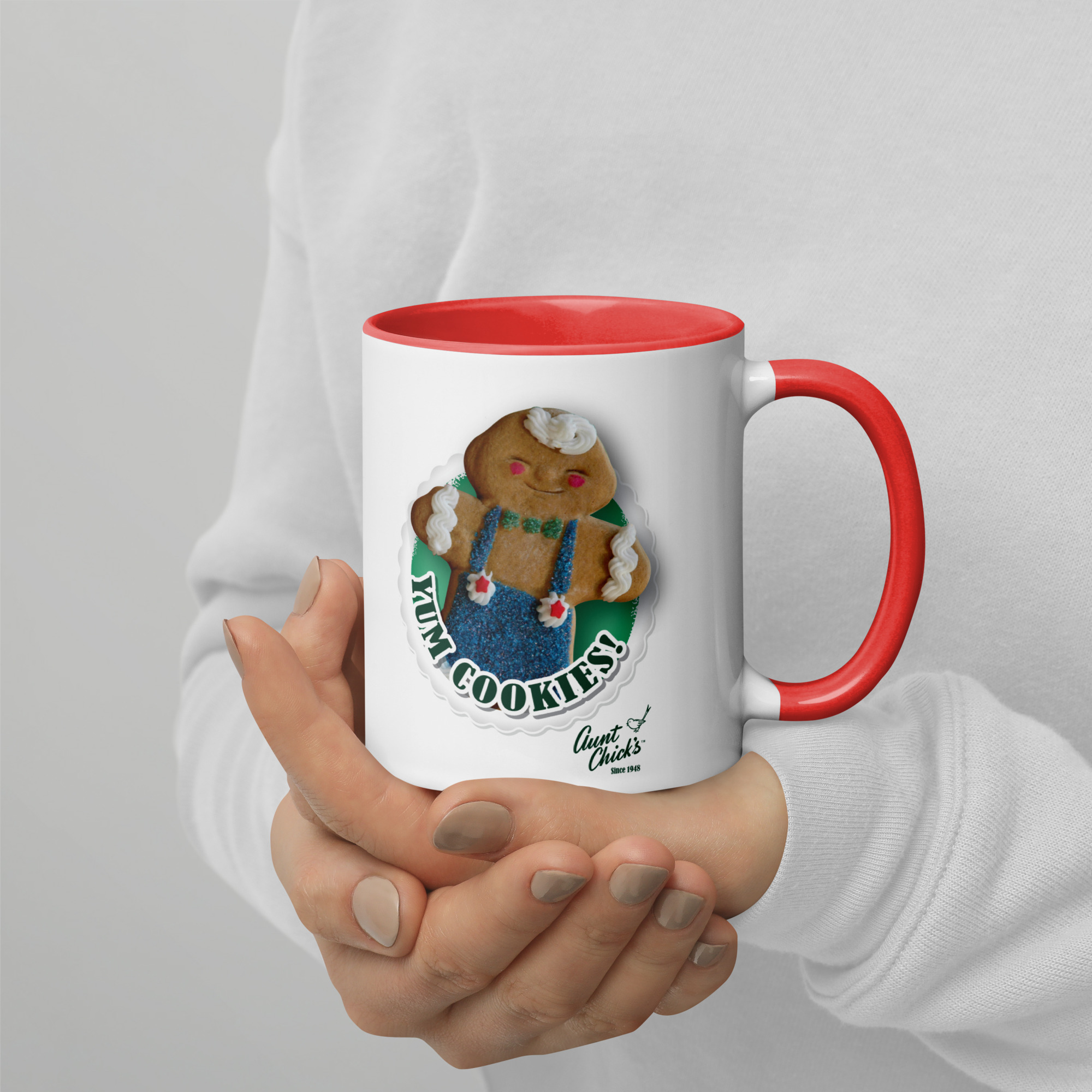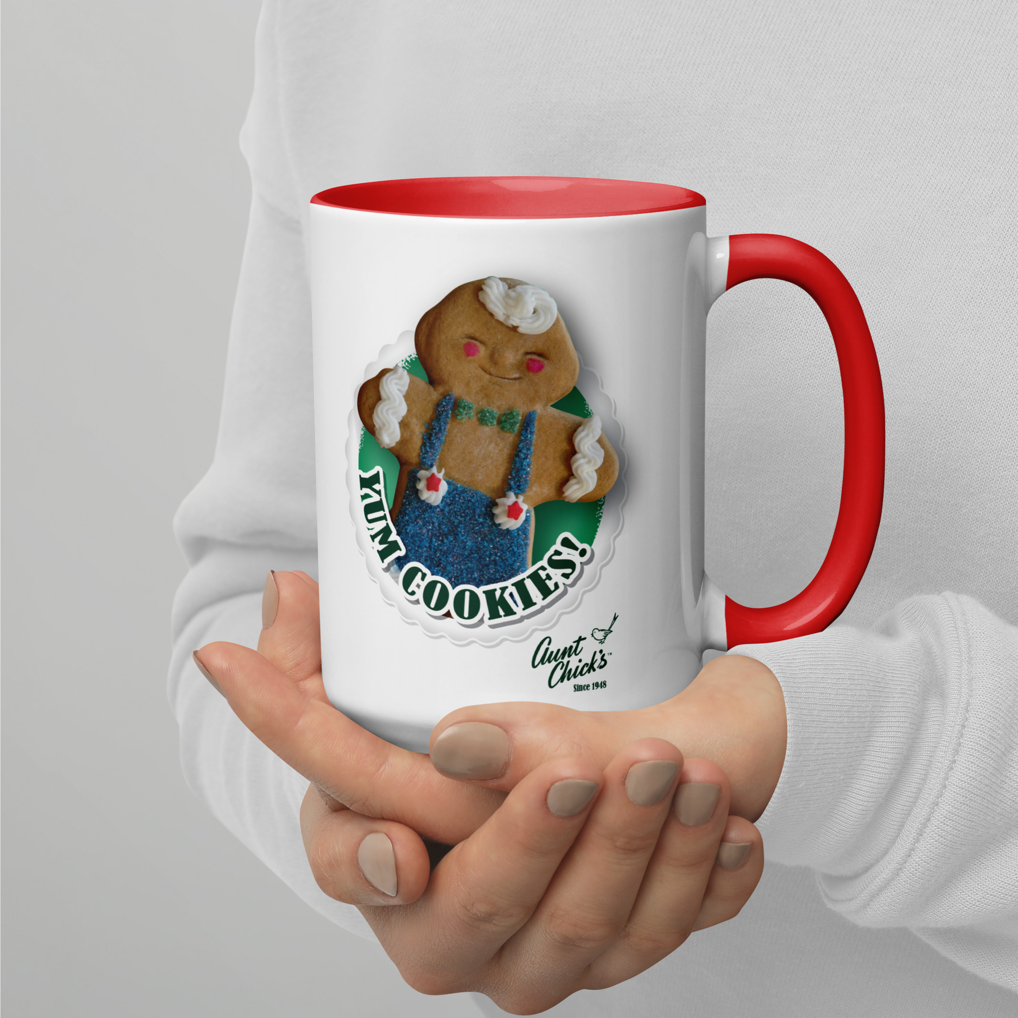 Introducing the Aunt Chick’s Gingerbread Man Cookie Cutter Ceramic Mug, the perfect companion for your holiday beverages. Featuring a charming Gingerbread Man Cookie made with Aunt Chick’s beloved cookie cutter and the playful phrase “Yum Cookies!”, this mug brings festive cheer to every sip. Available in 11oz and 15oz sizes, it offers ample room for your favorite hot drinks. Choose from three delightful interior colors: classic white, festive Christmas Red, or cheerful Holly Green. Whether you’re enjoying hot cocoa, coffee, or tea, this mug adds a touch of holiday magic to your daily routine.