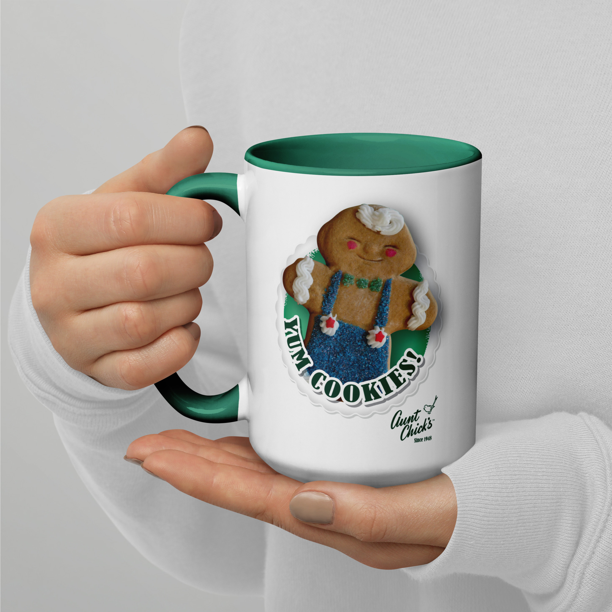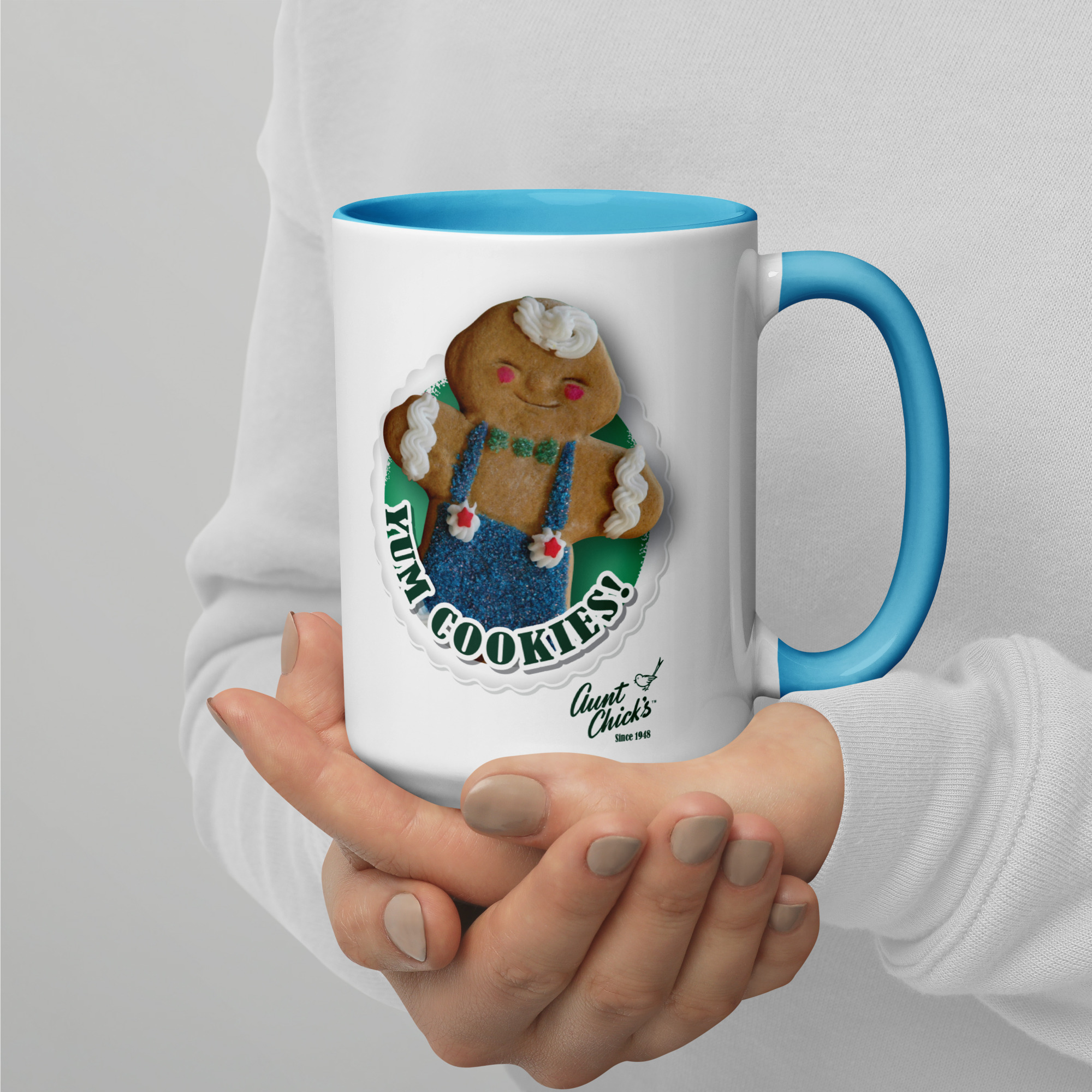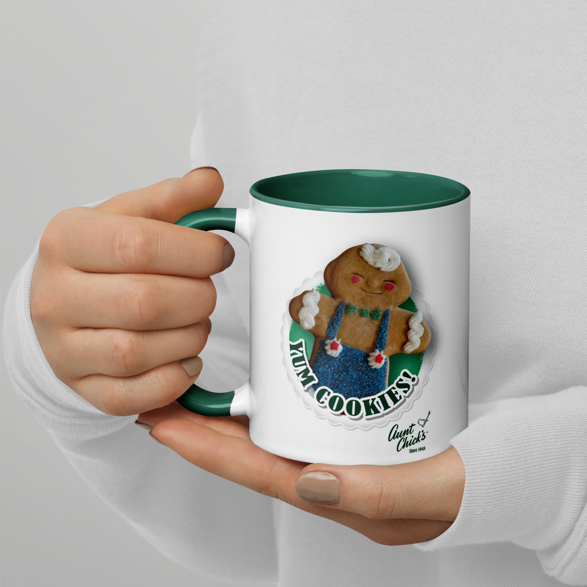 Introducing the Aunt Chick’s Gingerbread Man Cookie Cutter Ceramic Mug, the perfect companion for your holiday beverages. Featuring a charming Gingerbread Man Cookie made with Aunt Chick’s beloved cookie cutter and the playful phrase “Yum Cookies!”, this mug brings festive cheer to every sip. Available in 11oz and 15oz sizes, it offers ample room for your favorite hot drinks. Choose from three delightful interior colors: classic white, festive Christmas Red, or cheerful Holly Green. Whether you’re enjoying hot cocoa, coffee, or tea, this mug adds a touch of holiday magic to your daily routine.