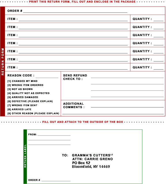 OUR GUARANTEE: Gramma’s Cutters Inc. guarantees all merchandise. If you are not completely satisfied with your purchase, you may return it within 60 days for a full refund of the purchased product’s price. Shipping costs will only be refunded if the order sent is incorrect or the item is broken. If this is the case please contact Customer Service by clicking here.